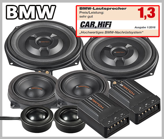 3-Wege Komponentensystem mit fahrzeugspezifischen Lautsprechern für BMW, 200 mm Bass, 100 mm Mitteltöner und 25 mm Kalottenhochtöner (Natüliche Höhen ohne Schrill nervenden Pegel ), separate Frequenzweiche mit Hochtonschutz..