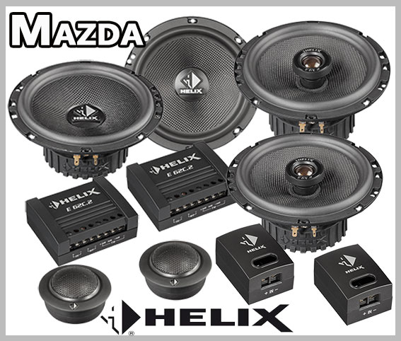 Mazda 3 ab 2013 - Heute Typ BM Kombilimousine, Limousine Lautsprecher Set für vordere und hintere original Einbauplätze vom deutschen Testsieger Markenhersteller Helix