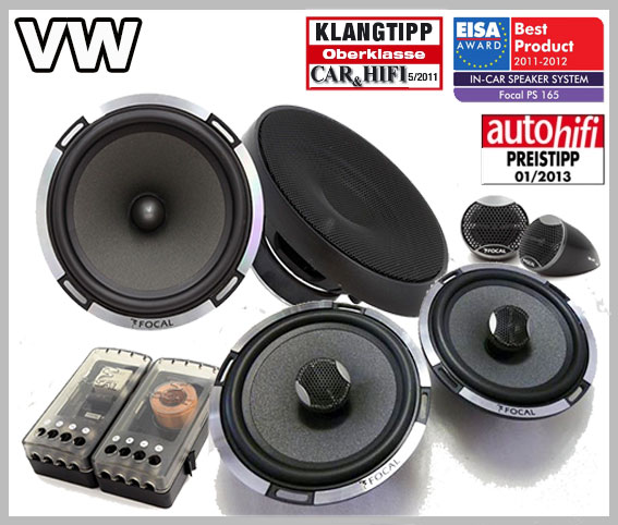VW Golf IV Lautsprecher Set für die vorderen und hinteren Einbauplätze, Testsieger vom französischen Hersteller Focal mit hervorragenden Klangeigenschaften