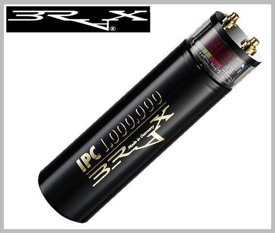 Das BRAX-Herz, ein eigenes für Car Audio Anforderungen konstruierter Elektrolyt-Kondensator, unterscheidet sich wesentlich von handelsüblichen Speicherelkos. Durch Mehrfach-Kontaktierung (bis 18-fach) und ultraschall-kaltverschweißte Anschlußfahnen zum speziell formierten Folienwickel wird der geringste frequenzunabhängige Innenwiderstand (< 0,9) Ohm erreicht.