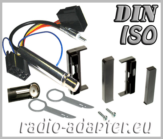 Radioblende + Entriegelungsbügel + Antennenadapter DIN + ISO mit Phantomspeisung und Stromversorgung