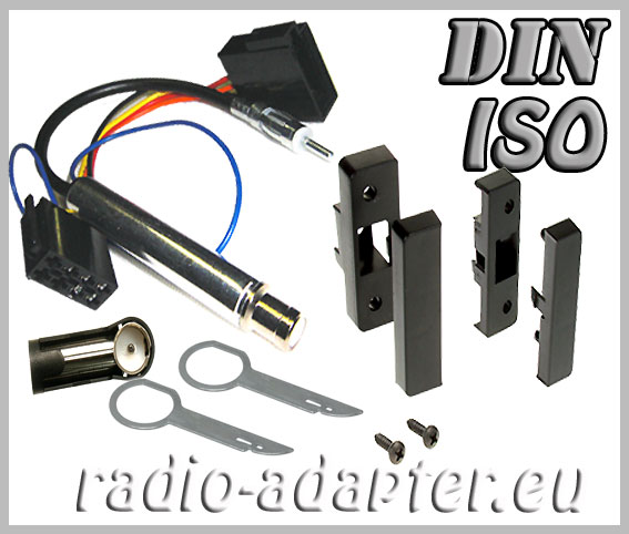 Radioblende + Entriegelungsbügel + Antennenadapter DIN + ISO mit Phantomspeisung und Stromversorgung