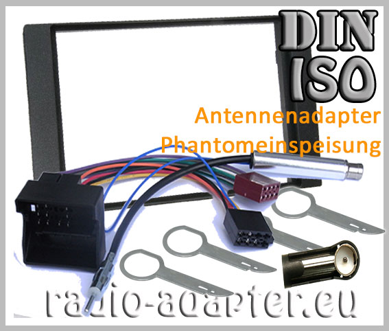 Radioblende Doppel DIN + Radioadapter + Entriegelungsbügel + Antennenadapter ISO + DIN