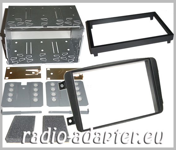 ![]() Facia Plate, Radioblende, Autoradioblende, Facia Panel, Adaptor, Mascherina radio, Entourage Adaptateur Soporte Autoradio Radioblende Doppel DIN für Mercedes Für alle Vito mit Mercedes Audio 10 Radio ![]() ![]() Einbauset bestehend aus Blechrahmen Doppel DIN - Abdeckzierrahmen und Befestigungsmaterial sowie Entriegelungsbügel Radioblende Doppel DIN Mit diesen Einbaurahmen erhält Ihr Doppel Din Gerät erst den richtigen Halt im Radioschacht, damit ist das Radiogerät richtig verankert, und Sie sind bei starken Abbremsungen oder anderen Unfällen gesichert. Der orginal Radioeinbaurahmen der mit dem neuen Gerät das Sie einbauen möchten mitgeliefert wurde, wird in diesen Einbausatz verankert. Der Rahmen ist besonders gut mit Doppel DIN Geräten der Marke Alpine, Clarion, Kenwood, Panasonic und Pioneer kompatibel darüber hinaus können auch Doppel DIN anderer Hersteller damit eingebaut werden.